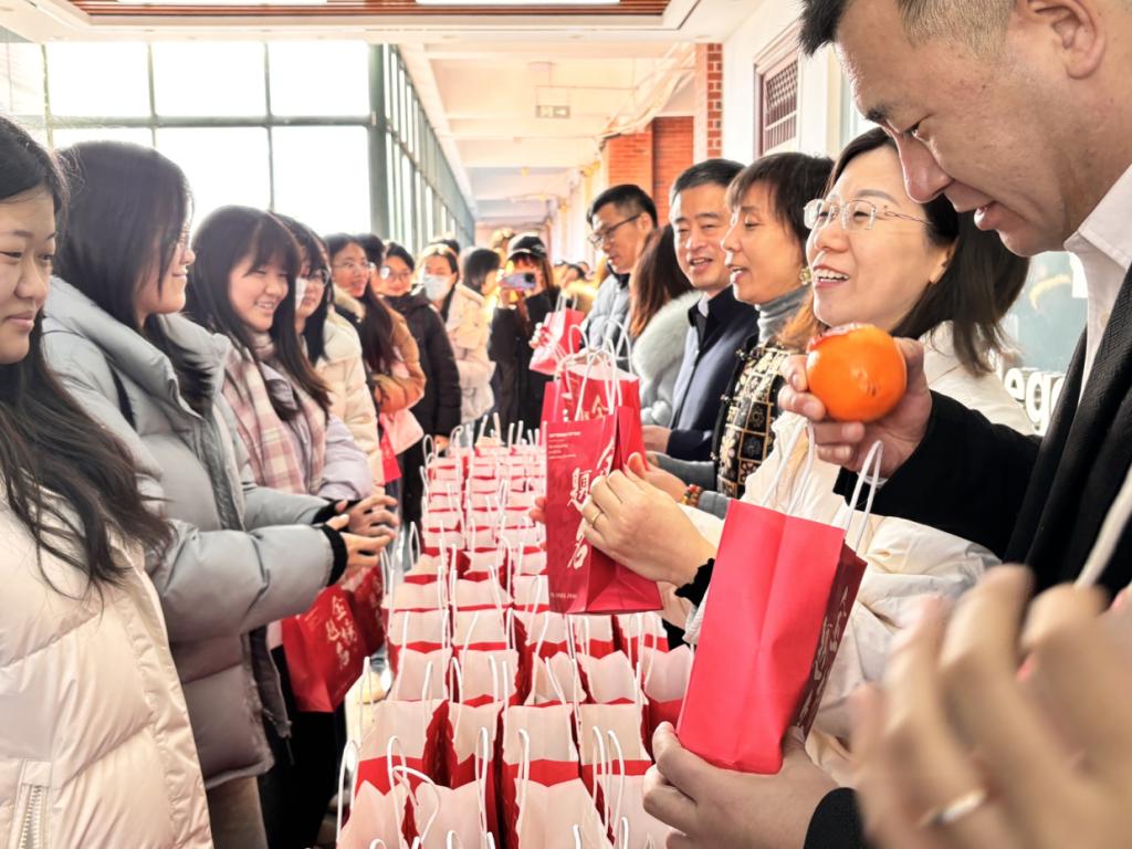 12月17日,2026年全国硕士研究生招生考试初试将近,外国语学院党委书记穆玉兵、院长宋燕等学院领导与教师代表前往慰问正在紧张备考的学生,并送上精心准备的考研祝福礼包,在凛冽冬日传递学院的深切关怀与真挚鼓励。