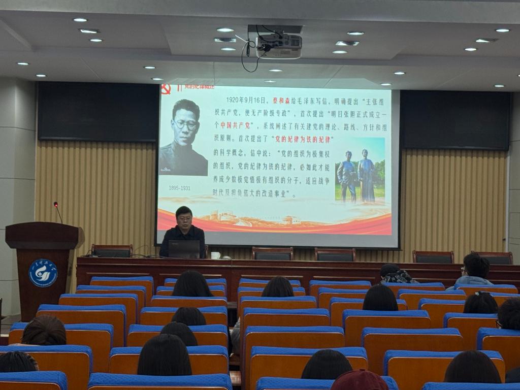 校纪委副书记白斌以“党的纪律”为主题讲授党课,从“党的纪律概述”“《中国共产党纪律处分条例》历次修订的背景和历程”“《条例》修订内容及常见违纪问题剖析”“抓好《条例》的贯彻执行、以严明的纪律推动党的自我革命”等方面展开讲解。白斌引导同学们深刻认识党的纪律的重要意义,增强廉洁自律意识,严格遵守党的纪律,做到言行一致,永葆党的先进性和纯洁性。