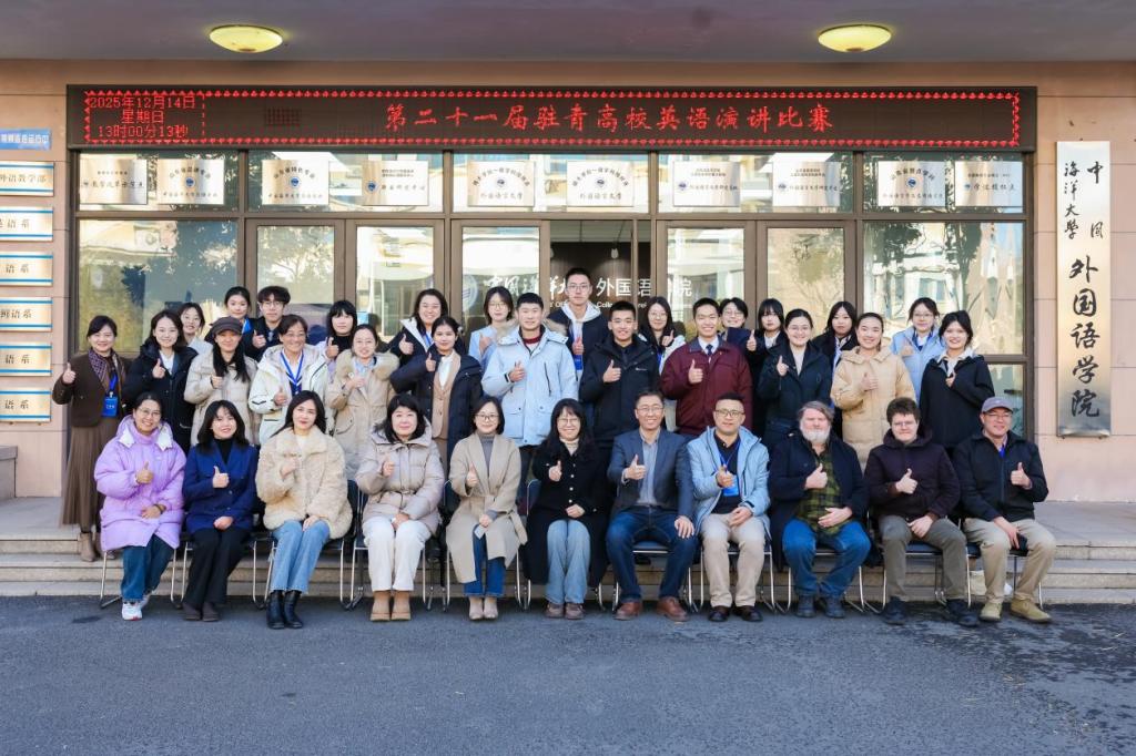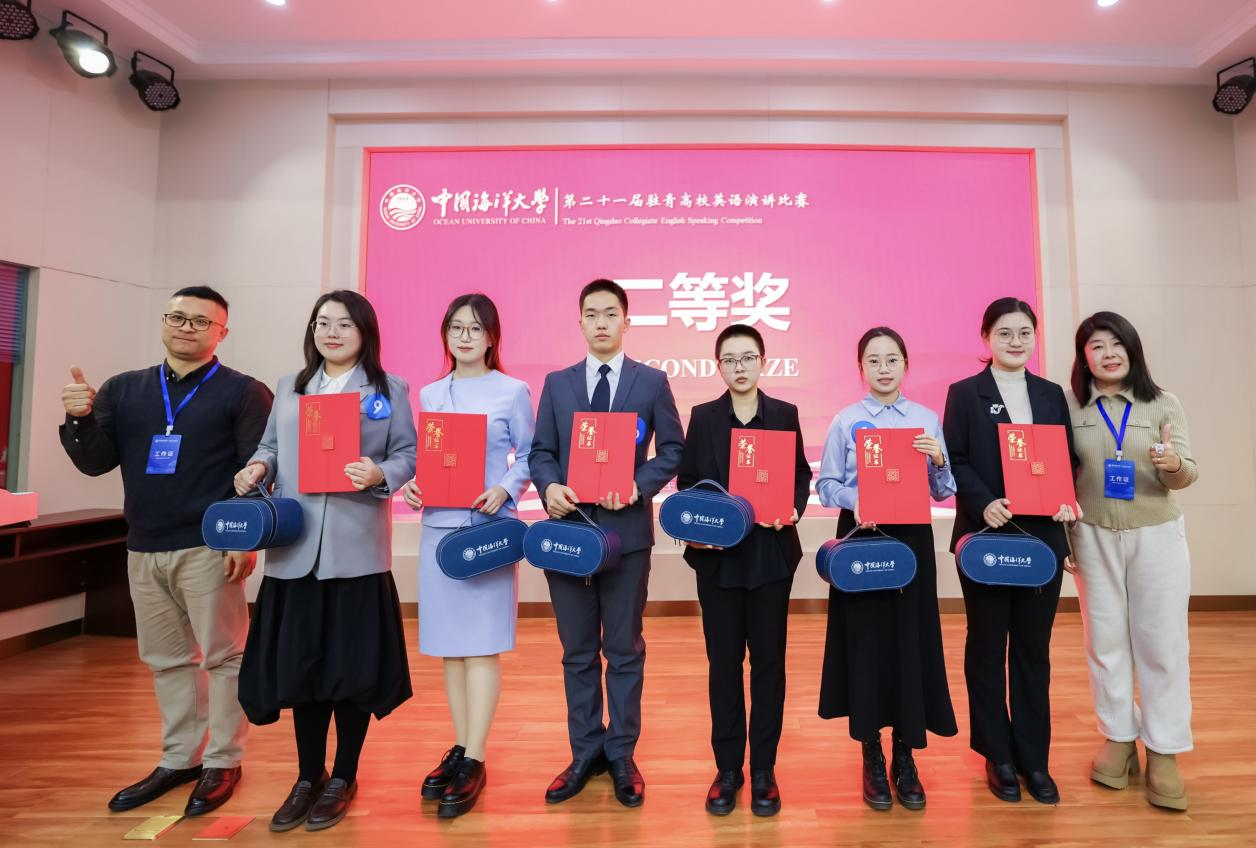 12月14日,第二十一届驻青高校英语演讲比赛于中国海洋大学崂山校区成功举办。本届比赛汇聚了来自青岛地区9所高校的16名优秀选手同台竞技。经过激烈角逐,外国语学院英语2023-4班李艺煊、英语2024-5班李奕辰荣获二等奖。