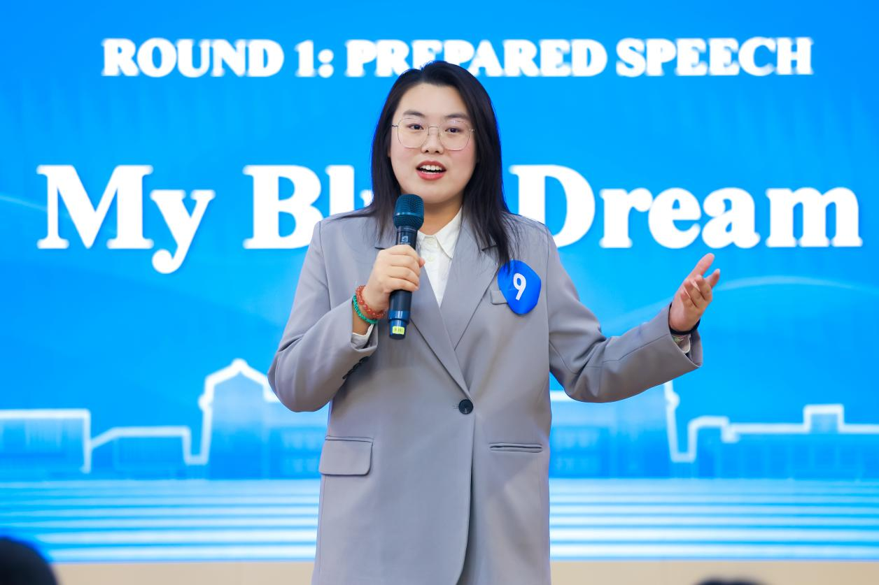 大赛以“My Blue Dream”为主题,设置定题演讲与即兴演讲两个环节。比赛中,我院两位选手沉着自信、发挥出色,以流畅的英语表达与清晰的逻辑思维,围绕主题生动阐述了对个人梦想与时代责任的理解,展现出外院学子扎实的语言应用能力与跨文化思辨素养。