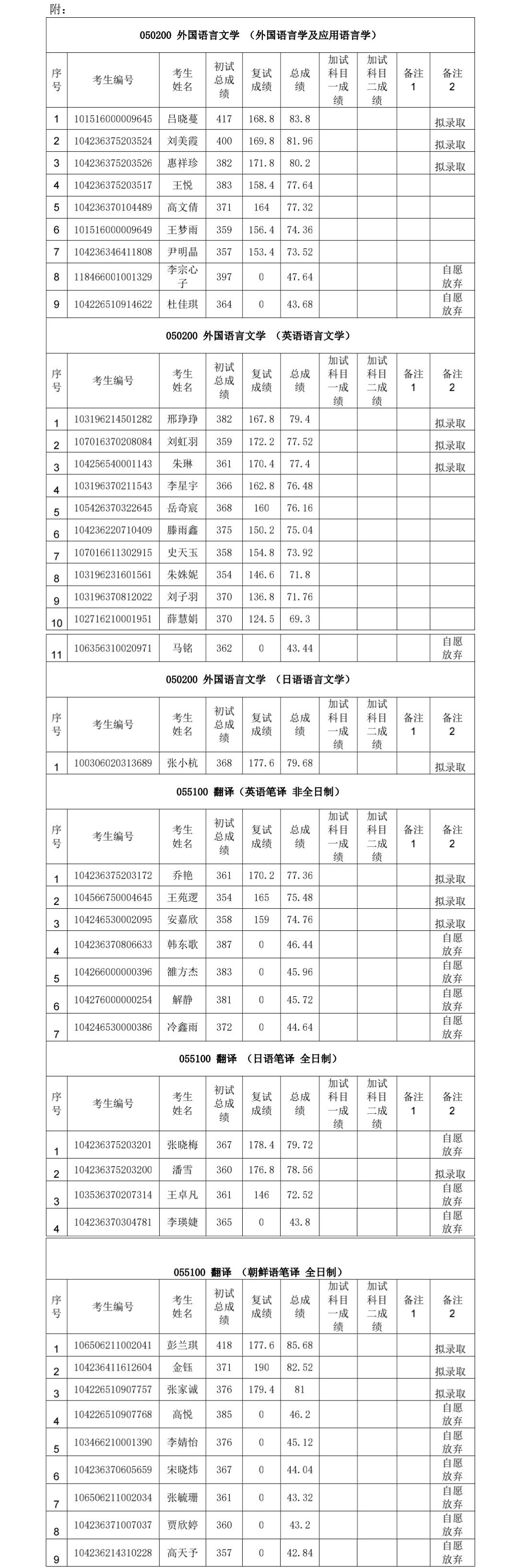 我院按照学校下达招生计划进行拟录取,若后期学校追加计划或公示名单中拟录取考生自愿放弃,将按照总成绩从高到低顺次进行待录取,并另行公示。最终拟录取名单由学校研究生院进行统一公示。