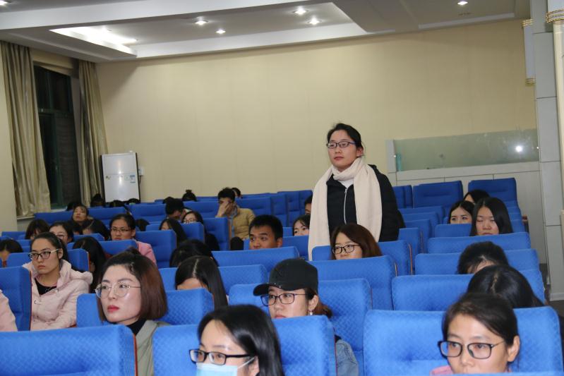 赵主任现为一级翻译,从事翻译实践多年,是外语学院翻译硕士指导教师。赵主任极富亲和力,与现场研究生互动,询问他们的职业规划,并解释了他们对翻译这一职业的迷茫和困惑。接着,赵主任从“企业需要什么样的人才?如何成为企业需要的人才?选择与努力同等重要”三个方面,以中冶东方工程技术有限公司为例,给到场的研究生择业作出中肯指导,建议研究生“根据自身实际尽早确定就业方向,并对照就业方向尽快完善自己”。最后,赵主任介绍了翻译中心的日常工作,并欢迎广大研究生来翻译中心实践。