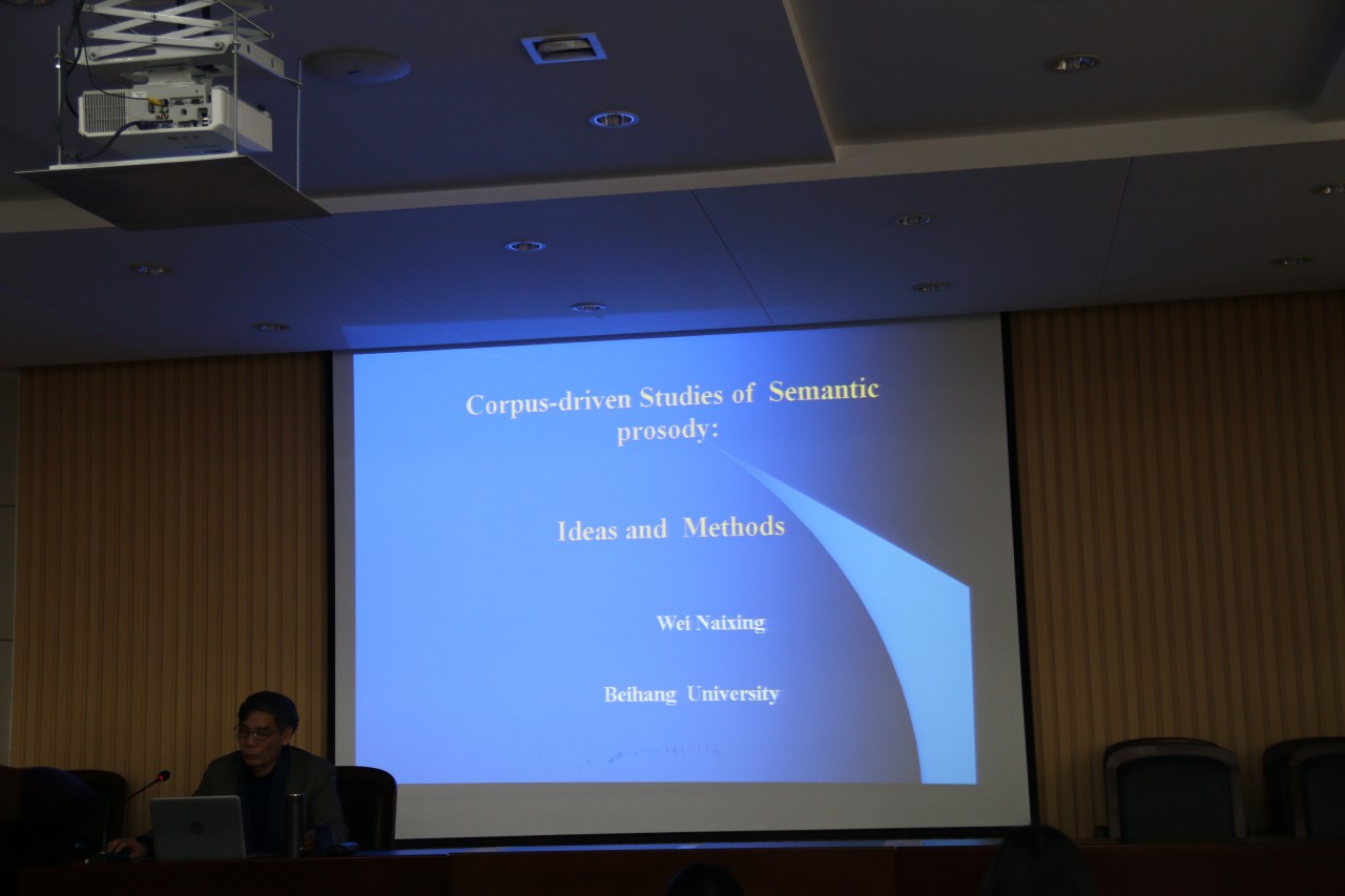 12月29日下午,北京航空航天大学卫乃兴教授继续为外语学院师生做精彩报告,报告主题为“Corpus-driven Studies of Semantic Prosody: Ideas and Methods”。报告由外语学院副院长高艳丽主持,我院部分教师、研究生到场聆听。