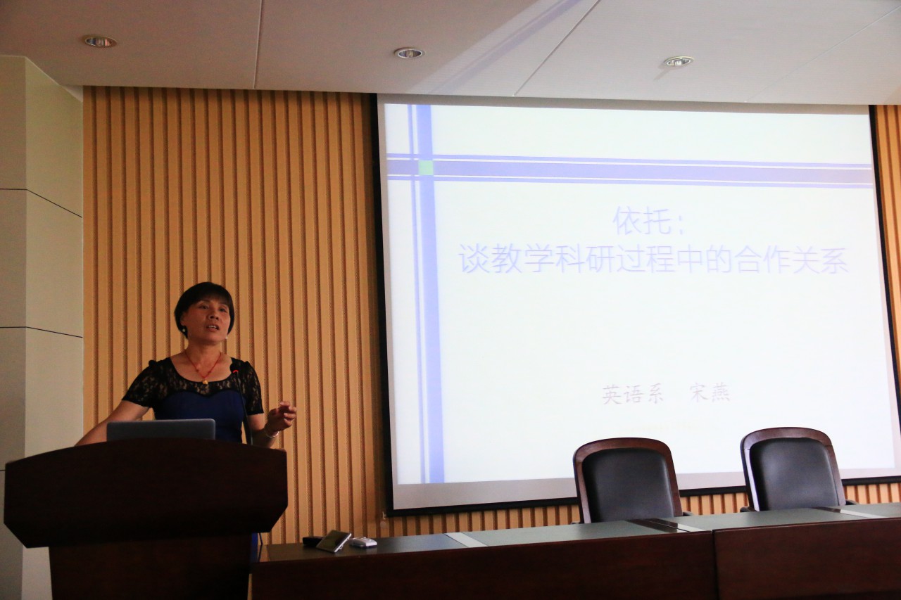 6月12日下午,外国语学院举办第十四期“秋实论坛”,副院长高艳丽主持了论坛活动,张卫东老师、吴桂金教授及宋燕教授进行了交流发言,全体教师到场聆听。