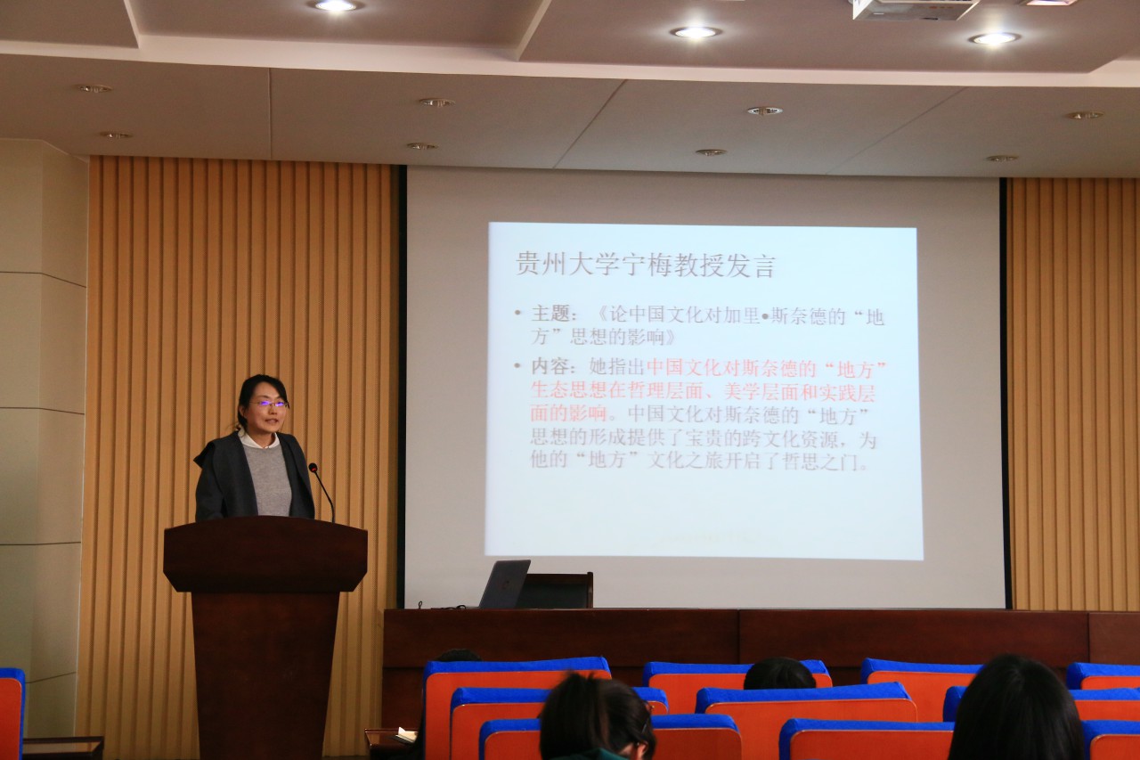 陶丽丽老师分享了全国美国文学研究会第十九届年会的盛况,该会议主题为新时代美国文学与中国。她着重介绍了盛宁教授、王宁教授、聂珍钊教授等知名学者的主旨发言内容,总结了与会专家在中西方文学文化研究中的主要观点,同时也提出了自己在学习过程中的感悟与理解,认为文论学术研究已出现新的转向,而美国文学研究与中国文化也已开始呈现交叉“互动”的态势。最后,陶老师总结了参会的收获,认为通过参会可以充分感受到学术气氛的自由与开放,加深自身的学术体验。