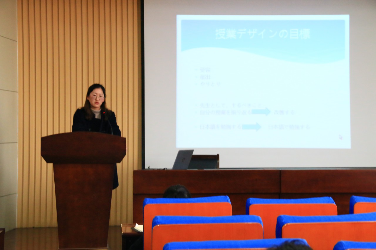 丁艳霞老师参加了第十二届全国大学日语教师研修班的学习,该研修班主题为课堂设计、课堂活动组织与管理。她介绍了北京大学赵华敏教授关于教师教学实践与教师专业发展的主题演讲,通过分享北京外国语大学曹大峰教授对日语教材教学的解读,与在座教师探讨了外语教学的本质问题,并就新理念课堂中的教与学应当如何实施提出了自己的看法。随后,丁老师就会议主要议题、论坛交流及教学设计工作坊的开展情况进行了详细介绍。