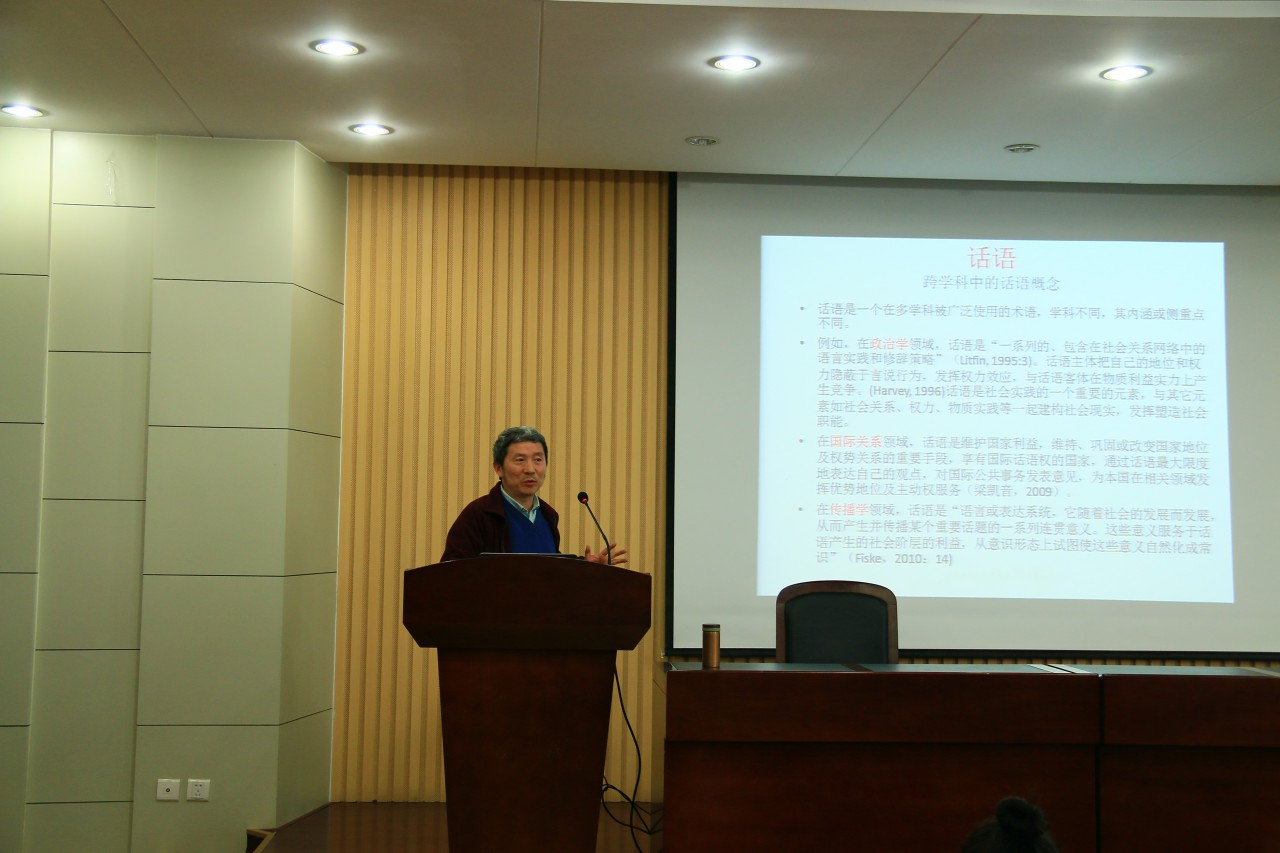 翟清永老师介绍了“2018 全国能源话语研究高端论坛”的与会情况。他详细阐述了能源话语的概念,指出近年来话语分析蓬勃发展,所分析的话语类型也越来越专业、细致,能源话语已经作为一个专门的话语类型进行研究。它承载着意识形态、权势关系、能源霸权的竞争和较量,理应纳入语言学研究视野。对这类能源话语进行研究具有较高的理论价值和现实意义。此外他又阐述了跨学科中的话语概念,以及话语分析的三个分支,即英美学派、福柯学派、批评话语学派,并着重分析批评话语的概念、缘起以及互文性与对话性的问题。最后,他介绍了与会专家的发言及个人的学术论文。