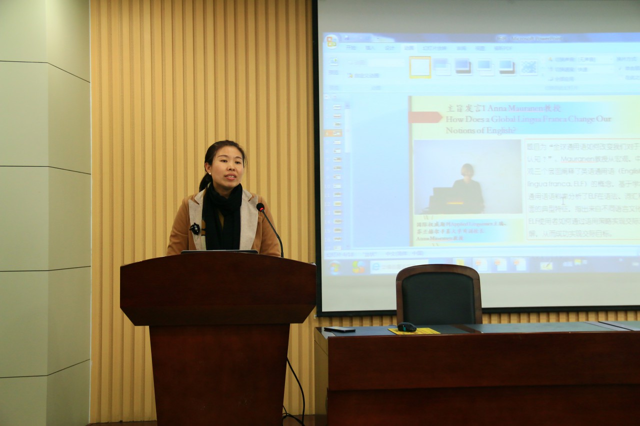 杨明老师介绍了参加“第八届中国第二语言习得研究国际学术研讨会”的情况,首先,她介绍了会议的主旨发言,分别展现了专家们就英语通用语(ELF)概念及语用策略、学习中心、输出假设、二语言语产出机制、技术及汉语语境下的二语习得反思、口头纠正性反馈等方面提出的真知灼见,同时也畅谈了个人对相关话题的理解。最后,她着重介绍了读后续写的概念、运用方法及相关的实证研究,论证了读后续写的促学效应。