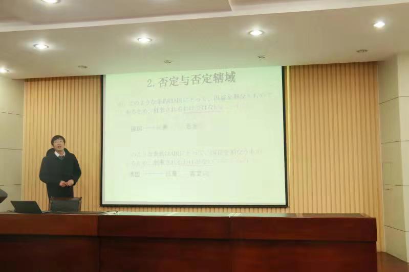 刘杰博士分享了结构语言学与语义学方面的代表理论著作及个人的读书体验,并介绍自己在语义和句子层级结构方面的研究成果。他通过具体实例分析了逆接成分与原因成分之间形成的结构关系、考证了原因成分是否处于否定辖域内以及程度副词与愿望表达成分形成的结构关系等问题,同时进一步对比了中日语言在程度副词上的差异。