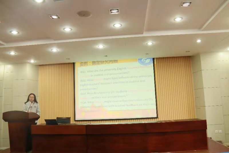 王博博士的研究兴趣是英语教学中的反馈以及学生在反馈中的参与问题。她分析了教师在课堂上的口头反馈以及写作中的纠错反馈,并以自己的研究为例,展示了质性研究的基本方法以及研究过程中的基本步骤,同时说明数据收集以及数据分析的方法。她认为,规划好选题领域十分重要,与此同时,应尽快形成某个选题领域的系列论文,以形成相对完整的理论框架。 除此之外,要加强团队建设,在合作中激发研究灵感。