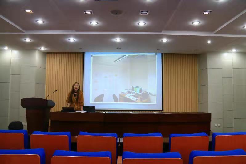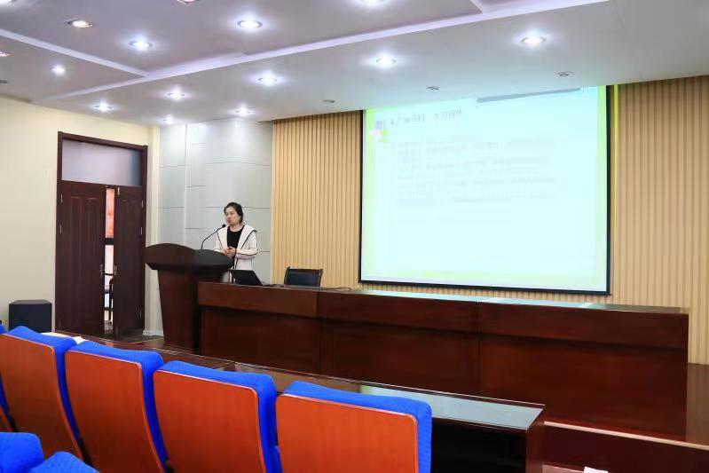 窦秋萍老师向与会教师展示了近年个人在教学及科研方面的研究情况。首先,她从研究内容、方案设计及研究思路等方面介绍了其在校企融合模式下对国贸专业商务英语课程体系的改革与实践,她认为有必要构建“校企深度融合、企业渗透教学”的产出导向型教学模式,建设侧重能力考核的多元化课程评价体系。随后,她又具体讲解了自己在传统文化发展与国际化推广方面的研究。