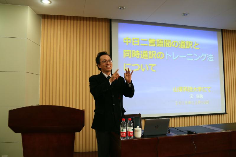 12月18日上午,大连大学宋协毅教授为外语学院日语专业师生们做了题为《中日二言語間の通訳と同時通訳のトレーニング法について》的学术讲座。