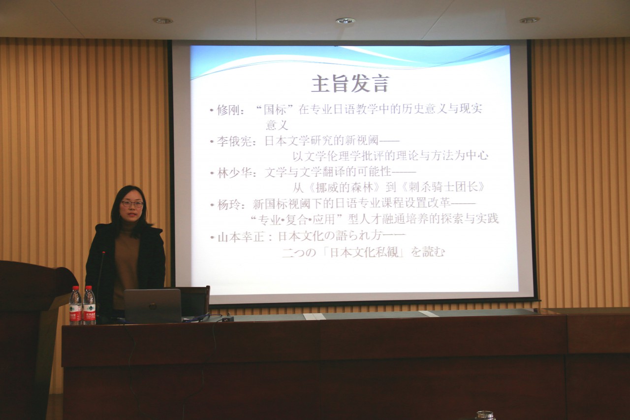 战迪老师对“第六届日本学国际高端论坛”的会议情况进行了全面总结,她着重介绍了修刚、李俄宪及林少华教授的主旨发言,具体展示了三位专家关于日语新国标的内容、意义和定位,文学伦理学批评基本理论和阐释,以及文学与文学翻译等方面的学术见解。另外,她对日语工作坊中的“基础日语课程教学设计”和“以学习策略为主导的听力教学模式设计”进行了深入的探讨,并以自身教学感受说明了问答法的教学设计以及听力教学的教学目标等问题。